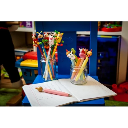 Produkt sprzedawany jako mix wzorów. Ołówek nienaostrzony, mix wzorów: tygrys, biedronka, mysz, żaba i krowa.